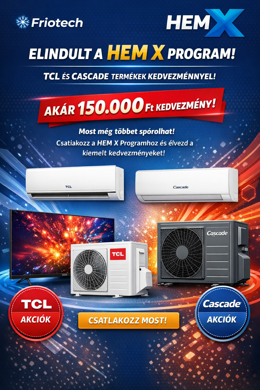 Válassz TCL vagy Cascade klímaberendezést, és használd ki a HEM X program extra támogatását.